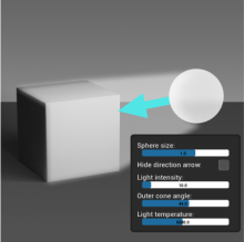 Spawn parametric lights and adapt parameters (sphere size, intensity, cone angle and temperature) |