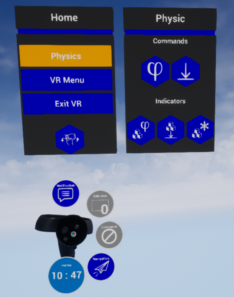 A brand-new interface is now available ! Located on user’s virtual left arm, it will enable you to access to commands without having to open the Pie Menu. . This useful interface will help users to execute: