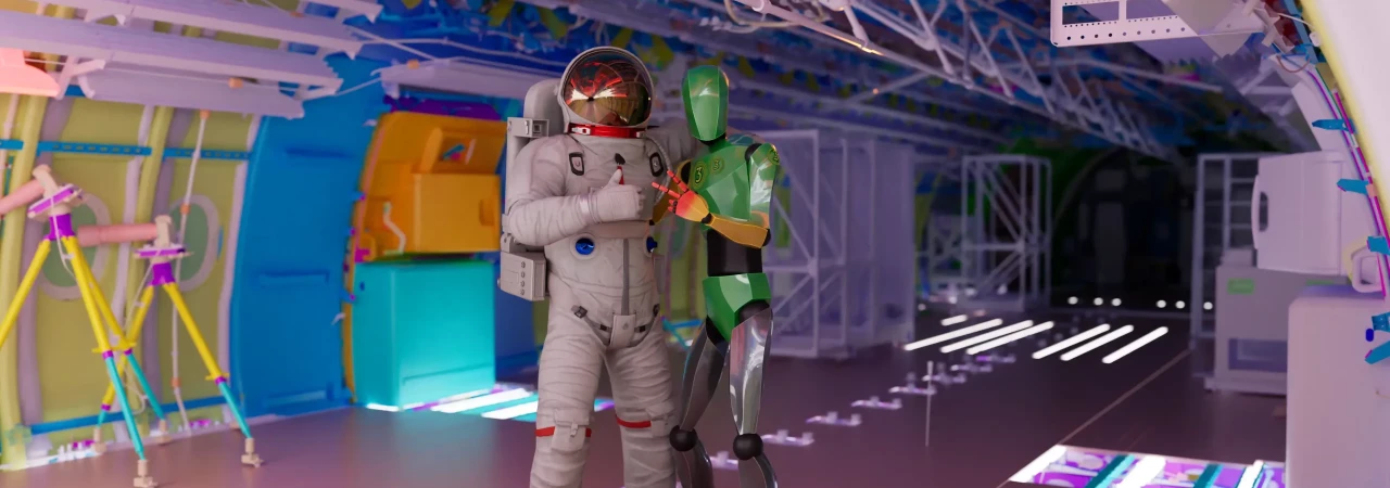 Integrate a fully articulated manikin in extravehicular activity (EVA) gear. Perfect for testing reachability, visibility, and posture within specialized space environments