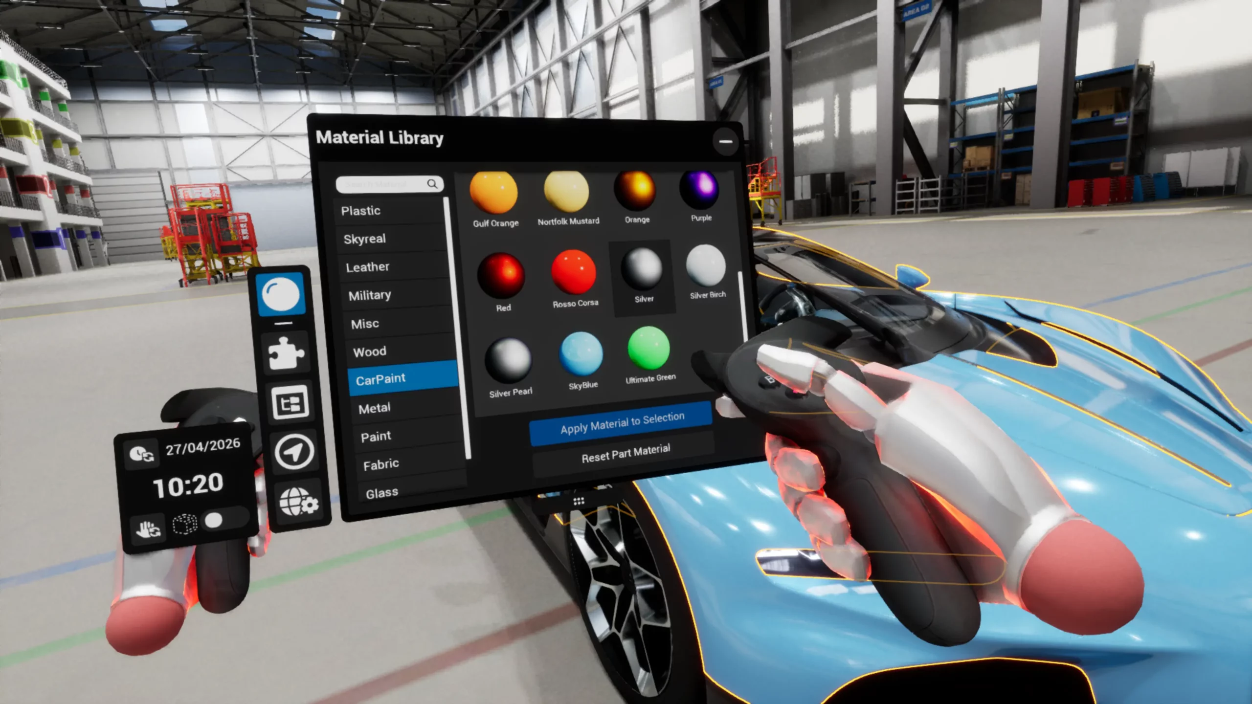 Access the complete Material Library directly in VR to instantly apply materials and textures to your CAD.
